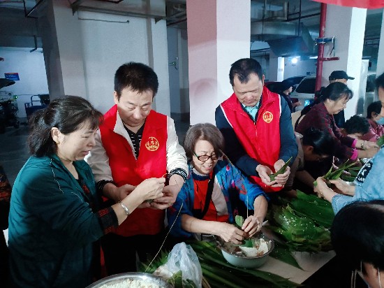 在包粽子过程中,市侨联机关党员与群众共同协作,拿粽叶、舀糯米、放馅料,在欢场笑语中包着粽子、拉着家常,互相交流包粽子的技巧和经验,分享彼此的生活趣事和快乐,你中有我,我中有你。不一会儿,一个个小巧的暖心“粽”新鲜出炉,而浓浓粽叶香也弥漫现场。包粽子活动结束后,党员志愿者们将粽子送到社区老人手上,为他们送上节日的祝福,尽显党群和谐一家亲。